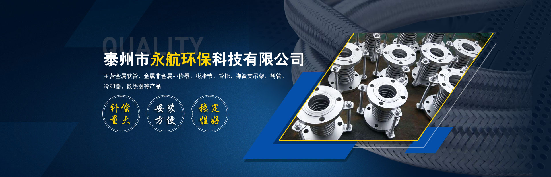 公司專注從事設計制造金屬膨脹節(jié)、不銹鋼金屬軟管、波紋管補償器、不銹鋼軟管、不銹鋼波形波紋補償器、矩形補償器、非金屬補償器、冷卻器、換熱器、風門、法蘭、管件、墊片、橡膠補償接管、減振器、減振墊和各類高壓軟管產品。